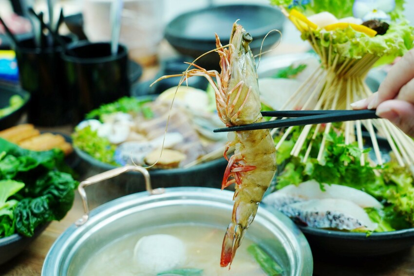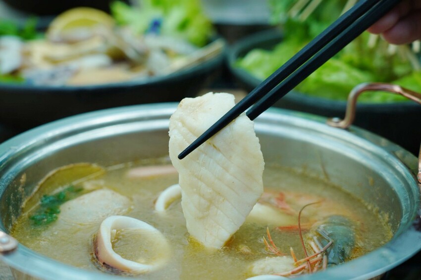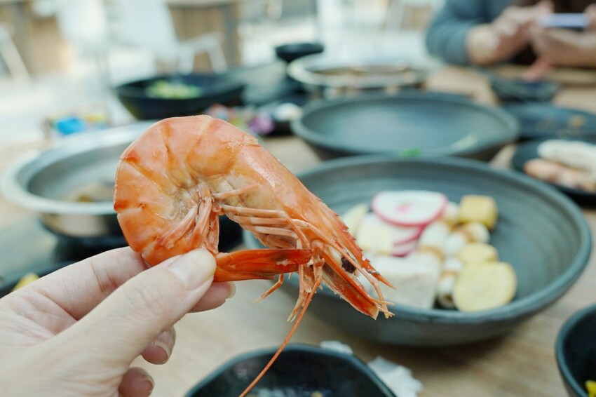 魚片放到胡椒湯一起煮,吃起來細緻軟嫩,草蝦肥碩豐美有彈性。