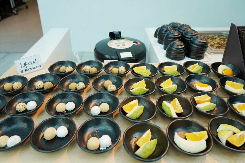 飯後有小甜點與水果,小點心是知名手信坊的小麻糬 ,有紅豆、花生與芝麻口味,小小一顆很剛好。