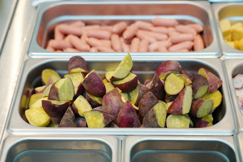還有養生地瓜塊!湯底不是只加芋頭才會甘甜,加地瓜同樣好吃。