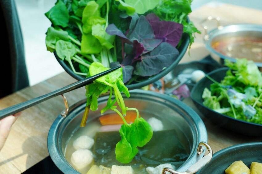 想要大口吃菜!放進大把水耕蔬菜,釋放出自然蔬菜甜味,讓湯喝起來更有層次,吃火鍋不再只是大口吃肉,多吃幾盤水耕蔬菜均衡一下營養!