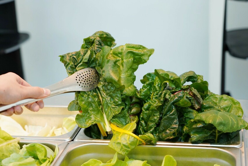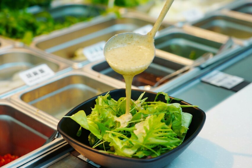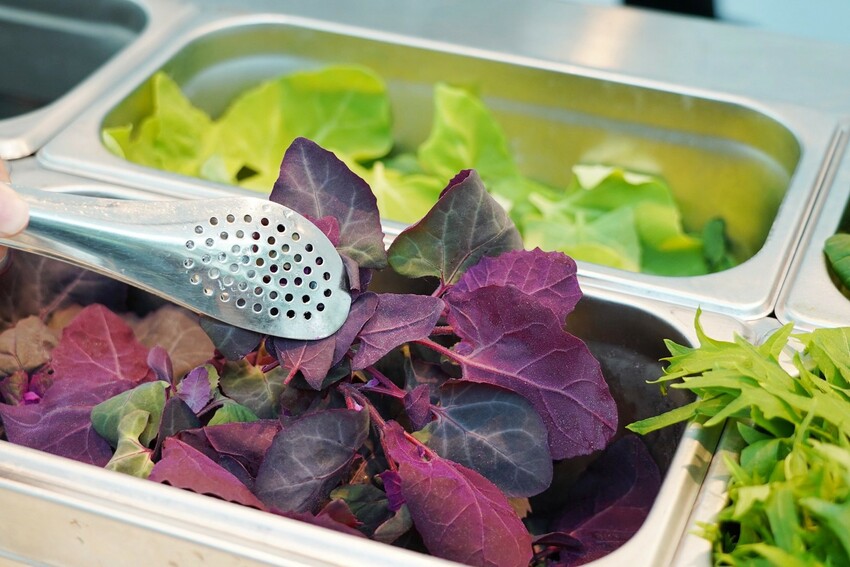 來到光鮮綠蔬一大重點!就是無農藥水耕蔬菜吃到飽,以無毒水耕栽種方式,讓蔬菜自然生長,新鮮摘下就能直接食用,光是吃這區就很划算,有奶油萵苣、法國菠菜、紅橡木萵苣..等,下方清楚標示水耕蔬菜名,總之全部夾一輪~