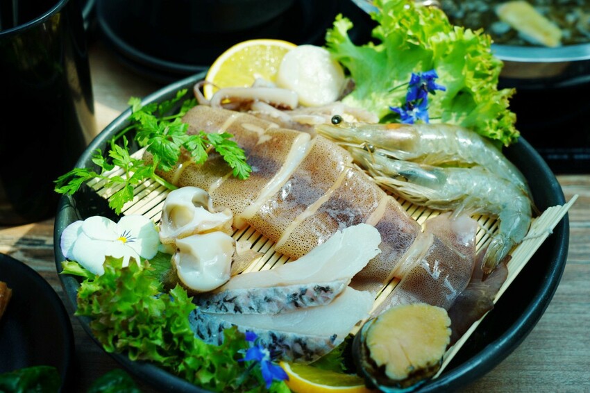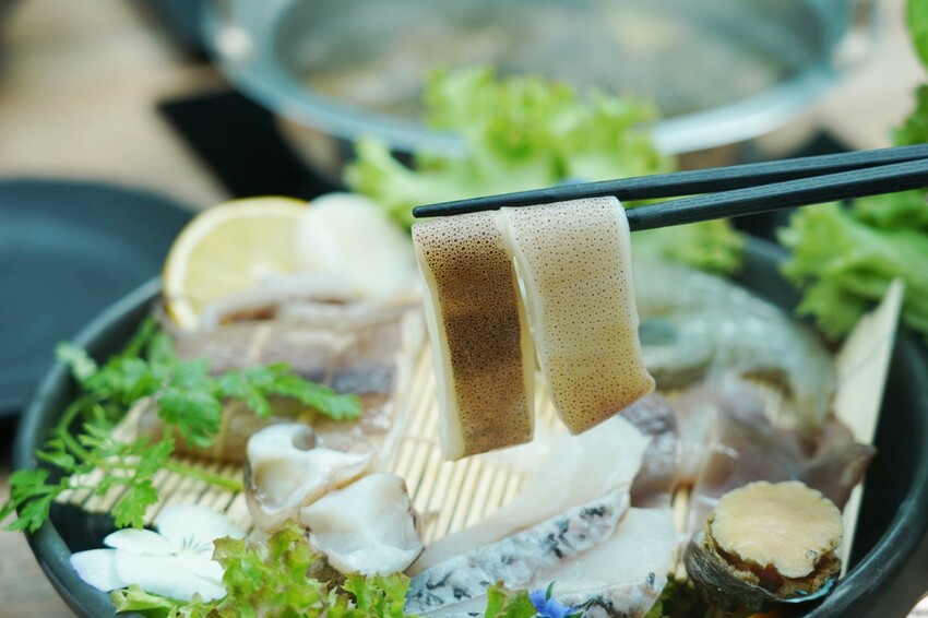 透抽Q滑有彈性,生食級北海道干貝,肉質飽滿又鮮甜,海鮮在嘴中越嚼越甜!