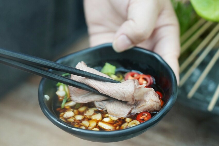 熟度不同口感也有差異,牛板腱沾醬一起吃更好吃!