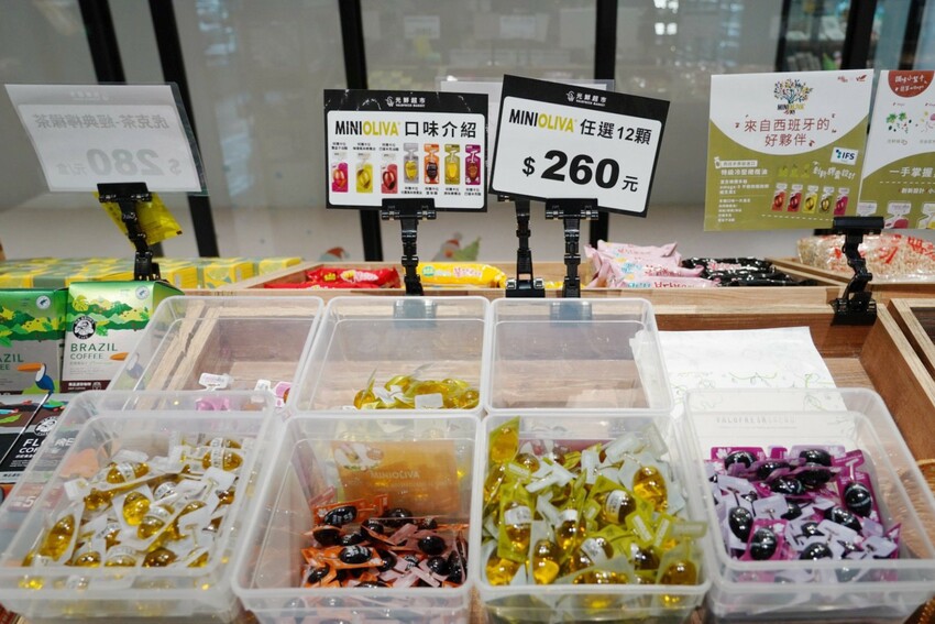 光鮮超市販售生鮮乾貨食品,有蔬果、水耕蔬菜、肉品與手工餅乾,當然最熱門的就是自家無毒水耕蔬菜,剛才吃過西班牙MINI OLIVA 特級初榨橄欖油醋,這就有賣喔!任選12顆260元。