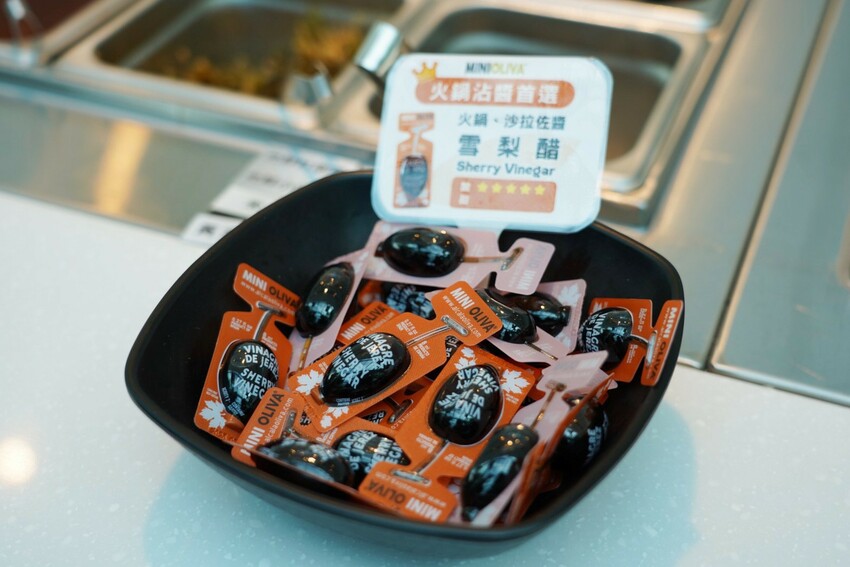 火鍋除了傳統台式醬料,還有日式胡麻醬、西班牙雪梨醋,都來了當然都要嚐鮮。
