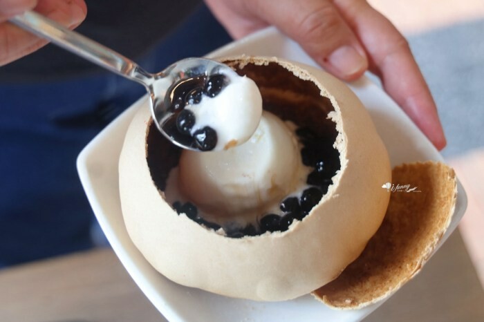 穿越過飲料店的吧檯後,後方就是座位區了,桌子數並不多,不少在地人都會直接外帶。