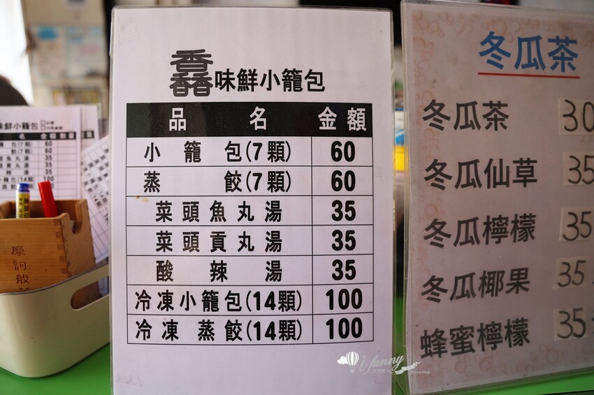 馫味鮮小籠湯包除了小籠湯包之外,另外還有蒸餃及湯品,另外也有冷凍品可帶回家自己蒸。若是有人不想配熱熱的湯,正好飲料店的冰品也可以點來一起享用。