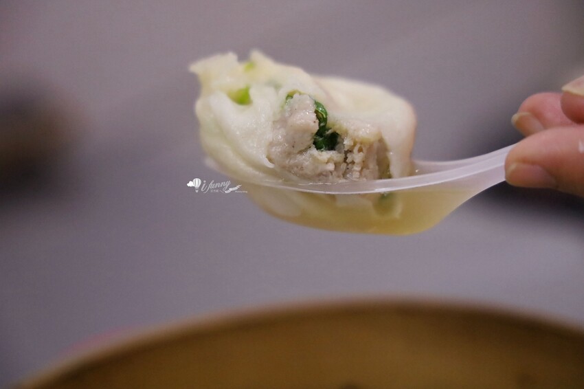 正好給的是透明的湯匙,大家可以從側邊見到小籠湯包的湯汁,真的超多的!