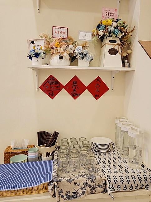 自助式茶水、餐具區,這邊也有提供兒童餐具唷~~