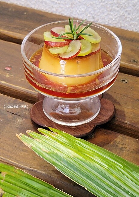 小葵家的烤布丁,上頭還擺了不少甜脆的葡萄,讓視覺更加分,相對的口感也更多一層果香。布丁吃起來綿密中帶點微微的紮實感,加上焦糖