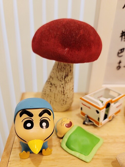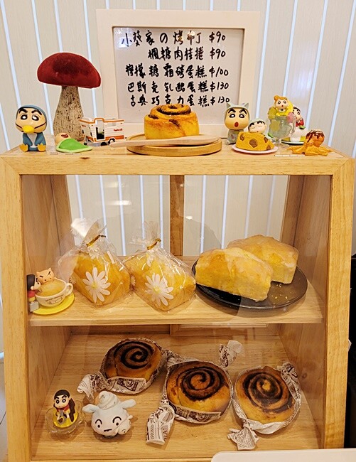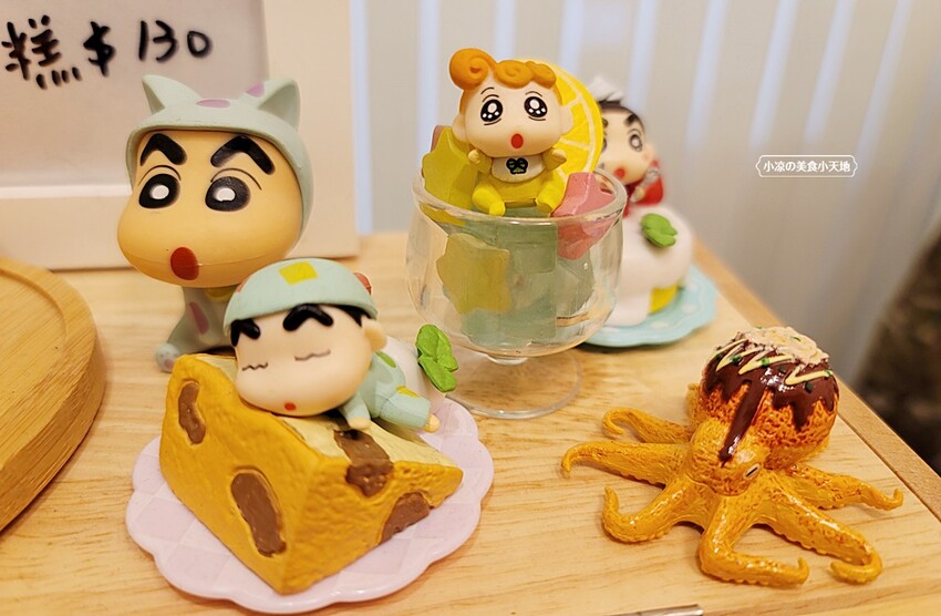 每日限量甜點,櫃子上頭還有不少老闆收集的蠟筆小新及小葵公仔呢,都超級口愛的捏~~~