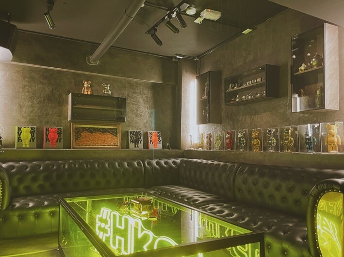 地下室除了開放的空間還有兩間私人包廂,低消為NT10000 10人,每增加一人就多加1000元的低消.所有的金額可以抵店內消費,像是飲料或是餐點.包廂內也是可以抽水煙,需要事先跟店家預定喔!兩個包廂各有特色,我超級喜歡這間放滿老闆個人蒐藏庫柏力克熊的黑色調包廂!