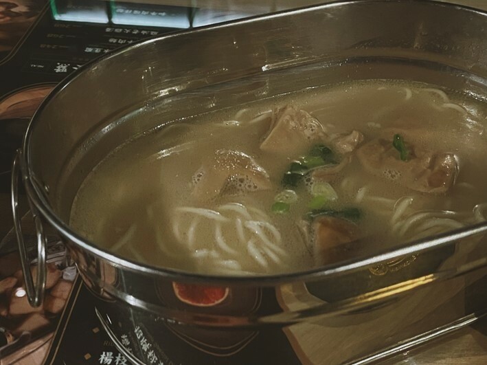 這個胡雞豬肚當真一絕…..溫暖濃郁的湯底,大塊Q彈的豬肚,有筋道的麵體,晚餐吃超飽的我忍不住吃了一碗又一碗.而且裝在小鐵盒的容器中超復古的!