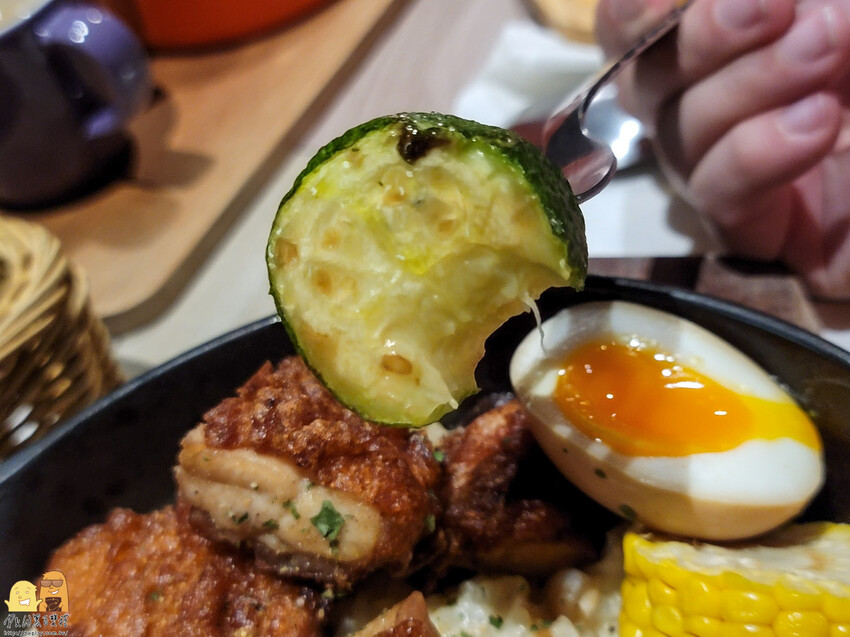 加上現烤的節瓜與甜玉米還有一顆半熟蛋,這一個餐點真的讓人吃得相當滿足與飽足