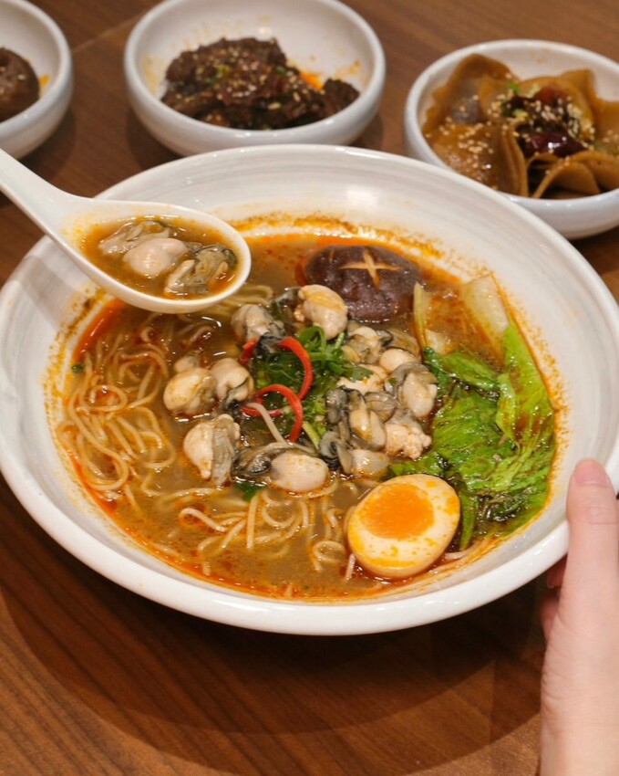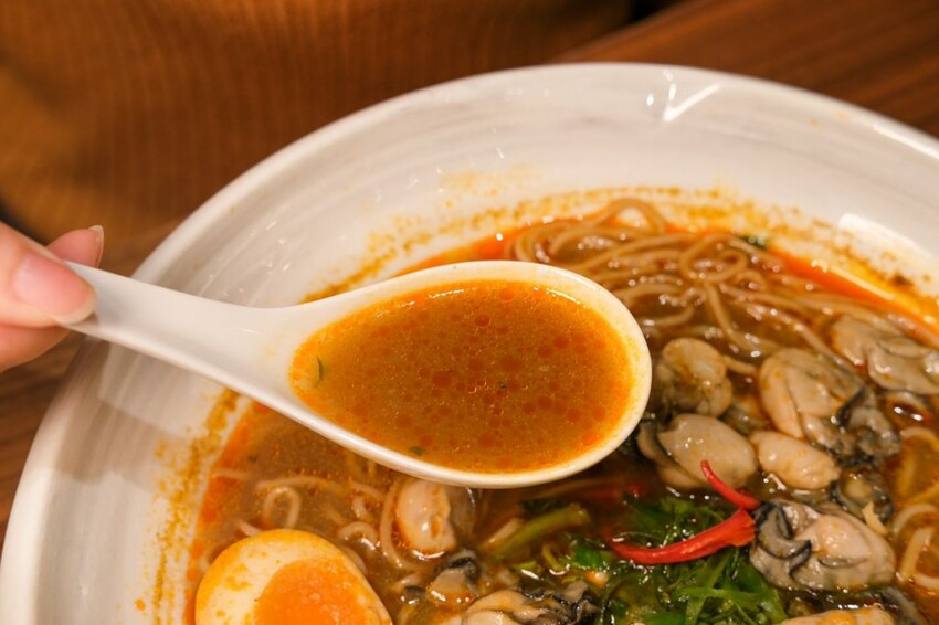 ▼爆鮮蚵仔熱湯麵搭配獨家麻辣湯底,再霸氣加入爆量肥美新鮮蚵仔,入口首先感受到香麻,而後辣度漸漸竄出,尾勁很強,屬於中偏大辣等級,愛吃辣的朋友可以試試!