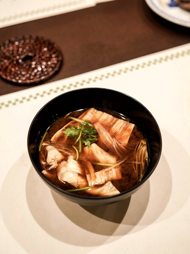 赤味噌湯裡是柔軟的生豆皮