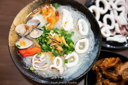 喜歡雞湯小卷米粉的朋友有福了,台北信義區也有,就位在世貿101旁吳興街內,立馬來嚐鮮,發現它除了湯的米粉也有乾的,選用特製泰式酸辣超夠味的,還附上一碗雞湯,採用漁場現流小卷,急凍零下50度C新鮮直送,天然食材熬煮的雞湯,完全不添加味精,內用還可以免費加湯,加米粉也只要10元,看著滿滿的海鮮料理,品嚐鮮甜湯頭,超滿足的!