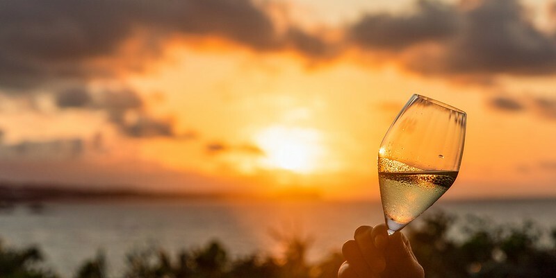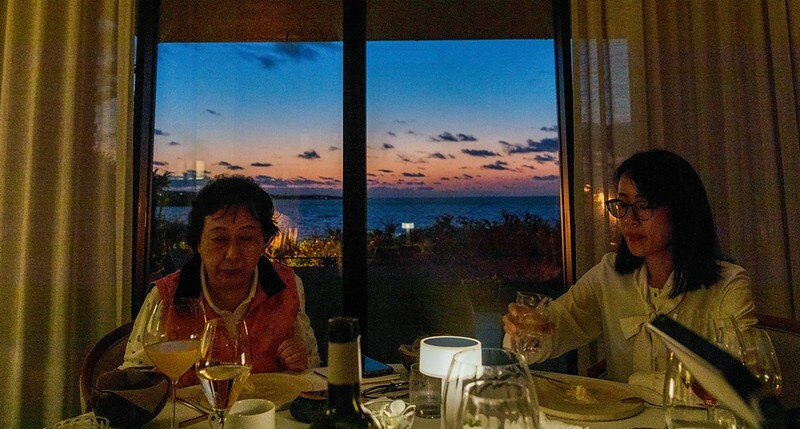 魚子醬、松露、奶油,自然都是香檔的好朋友,這時陽台上的夕陽像是不甘寂寞的發出抗議般的冬日溫暖,引得我們拿起香檳到戶外敬了沖繩冬天才有的暖陽。