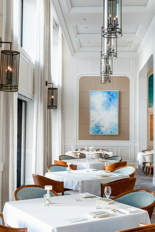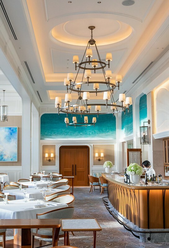 回到ハレクラニ沖縄中三間米其林等級的餐廳之一「SHIROUX」,入口的門有一點傾斜,有一種走向隱密沙灘的氛園,就像沖繩有無數沒被發掘的祕境般,另一個角度思考,也不會直接面對餐廳內用餐的客人,多了一點點高級餐廳的隱密性。當然,以上純屬個人猜測和飯店設計無關xd。