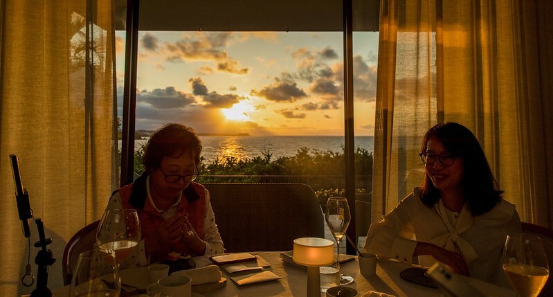 因為是面向西海岸,所以訂晚餐可以一路從沖繩的藍悔到沖繩的金黃,幸運的話還可以看到沖繩著名的耶穌光。