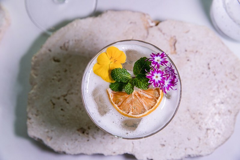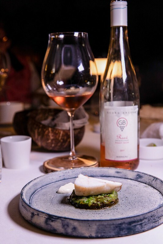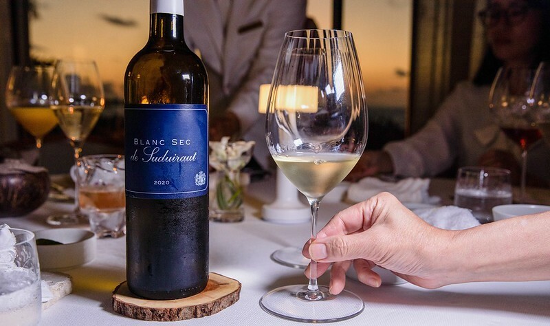 第三杯是佐海鮮的法國白酒Blanc sec de Suduiraut 2020,相對來說這隻白酒比較釀醇厚,不帶太多沾唇舌的無謂甜度,佐味道較淡的海鮮料理相當適宜,當然單喝也是不錯的選擇,畢竟耐喝度也高。