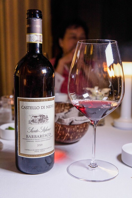 第五隻搭肉的紅酒是義大利Castello di NeiveBarbaresco 2019,這隻酒據說在2017、2018拿過不少獎,喝來味道偏厚偏重,卻比較沒有紅酒的後澀味,不曉得是不是本部牛的油質較厚的關系,讓這紅酒喝來顯得特別柔順。