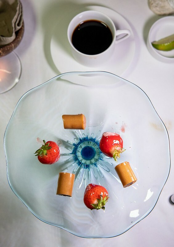 晚後的小甜點,是草莓和巧克力捲。整體來說,我非常非常非常喜歡,SHIROUX以日式法餐的手法,完全的呈現沖繩食材,又能在料理中見到沖繩和琉球料理的精髓,甚至是餐盤小物上的巧思,都貫徹了川手寬康結合地方食材、文化的穿透力,誰說將來不會有一種料理叫「沖繩法式料理」?