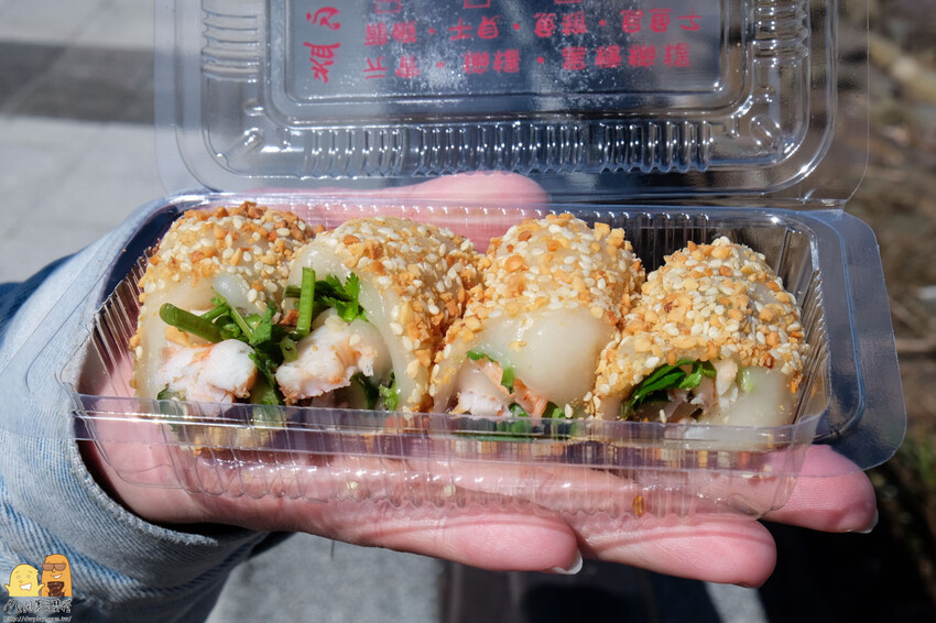 龍蝦麻糬每一個裡面都有龍蝦肉+香菜加上咬勁蠻不錯的麻糬本體,在上面還有撒上花生粒