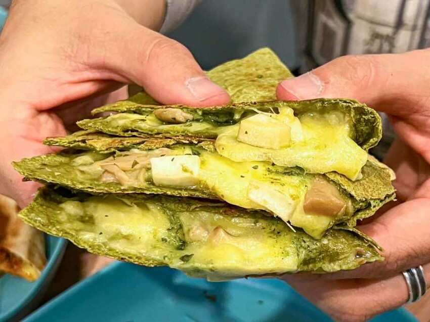 ▼這款也是店家的人氣品項,薄餅的餅皮有加入菠菜所以是綠色的相當特別耶!