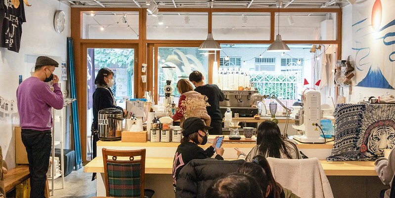 門前是單的咖啡吧檯,裡面是微老宅的風格,尤其是裡面的老沙發很有味道,桌和桌之間有一點擁,倒也顯得熱鬧。