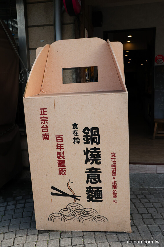 「食在福鍋燒意麵總店」就開在台南海安路上,近河樂廣場,說起「食在福鍋燒意麵」你或許不一定知道,但身為台南人一定吃過他們家的麵,老一輩的台南人應該都聽說食在福製麵廠,是台南在地有110年以上歷史的老麵廠,傳承老師傅手工製麵的手藝製作出好吃的麵條,他們製作的麵款有很多種,像是常見的陽春麵、關廟麵、刀削麵、鍋燒意麵、雞絲麵等等都有,所有麵款都不加化學原料,台南有不少的賣麵的店家用的就是他們的麵體,而「食在福鍋燒意麵總店」就是食在福製麵廠的鍋燒意麵實體店面。