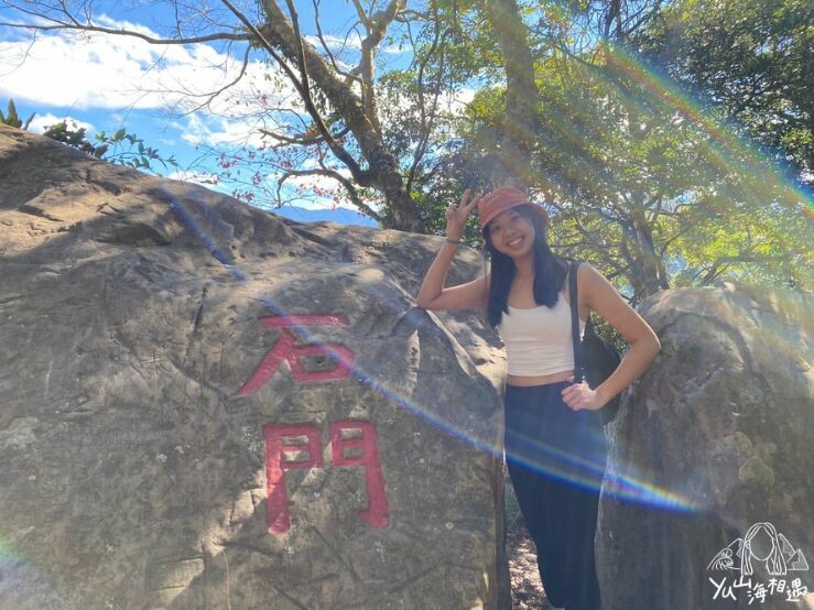 再來會經過很有特色的石門,因為地殼變動使巨石有裂縫,再經過長年累月的雨水沖蝕,逐漸擴大變成這樣的樣貌,縫隙只容得下一人通過。