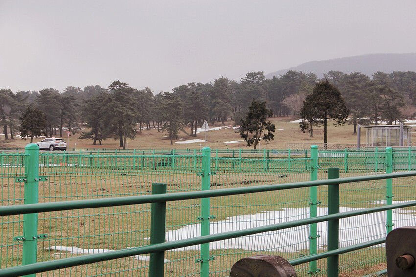 「馬放牧地」是專門培育與放養濟州島血統純正的土種驕小馬,在以前是生幾殺幾隻,為權貴之人所食而且只有男人可食肉,12~3月馬兒轉移較溫暖之處,所以這次看不到!