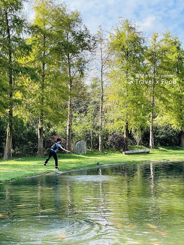 用餐後的客人一群群的依偎著池邊散步賞景,店家也很大方送給孩子一袋袋魚飼料,讓大家開心餵魚。