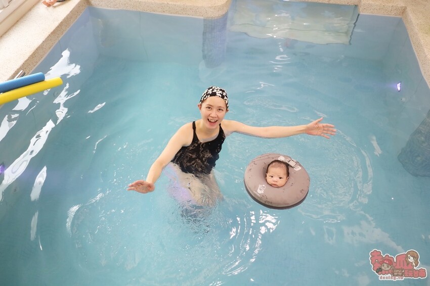 過程中會有專業的老師在一旁引導老婆如何帶領寶寶下水,所以來玩的媽咪們也不用太緊張啦!首先要不間斷的與寶寶說話,例如「準備下水囉!」「我們要準備玩水囉!」諸如此類的口語互動,非常容易上手~