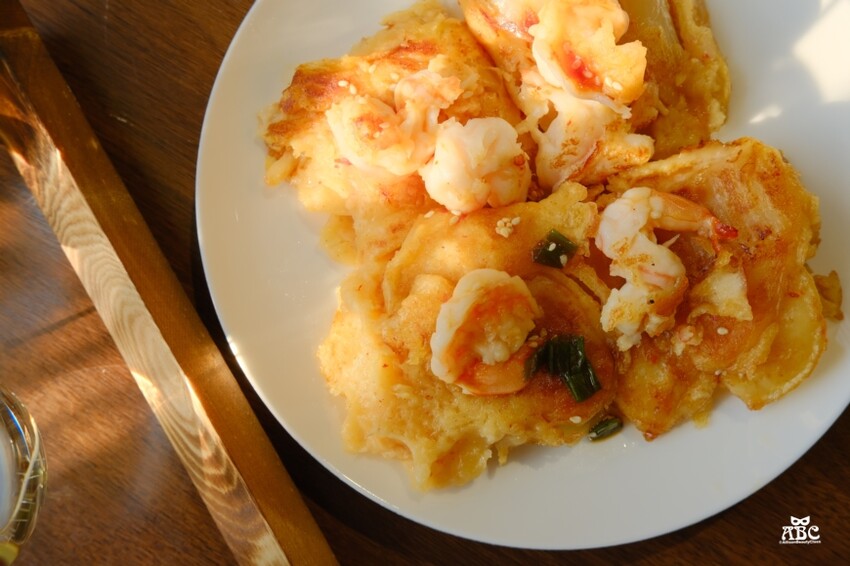 食材:韓式泡菜、蝦仁(或其他你喜歡的任何配料)、蔥(可省略)、煎餅粉、開水