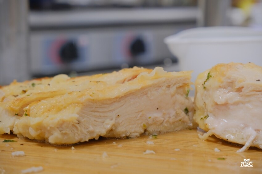 這麼厚的雞胸肉就怕會柴,或是內裡不熟,但我一次成功!以前我都會先切成薄片再來做這道,這次挑戰來個厚切,完全沒問題!