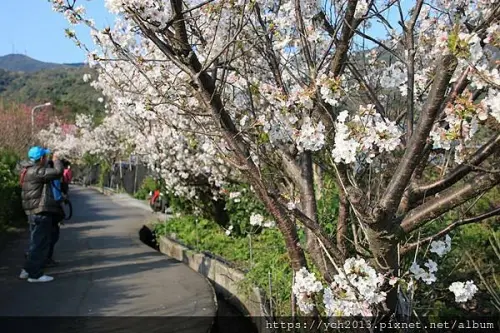 今年頂湖步道的墨染開得早,小路的另一側田裡種的是吉野櫻,相當密集,