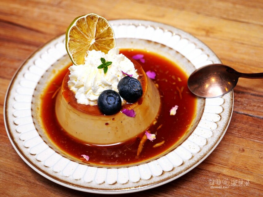 布丁滑嫩無氣孔、伯爵茶味醇厚,頂層焦糖與環繞在旁的苦甜糖漿恰如其分不搶風采。
