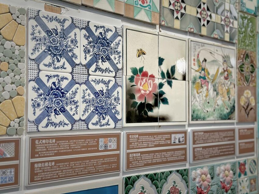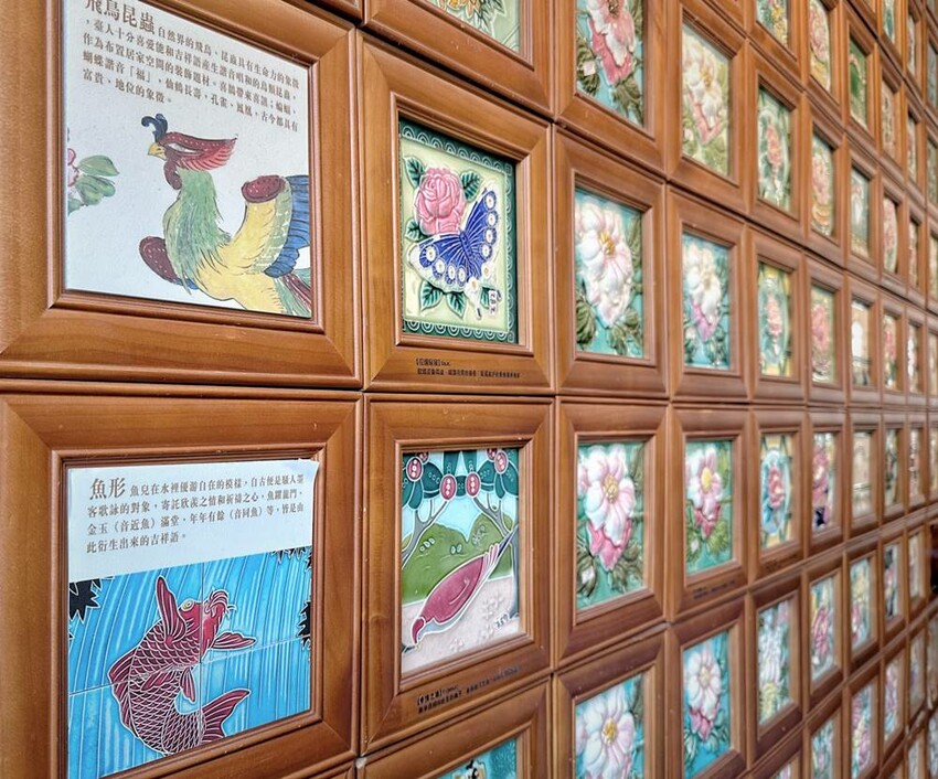 花磚又稱為馬約利卡磁磚,這技術原始於英國的維多利亞磁磚,都是手繪而成,主要藉由日本引進到台灣,早期在1915-1935年間,因花磚象徵著富貴,所以在台灣各大家族都喜歡用花磚來妝點門戶,越是稀有特別的花磚更能彰顯家族的財富。但在二次大戰後,耗時耗力的手繪花磚就停止生產,現在若能看到建築物或家具上還嵌入著花磚,肯定都是極具歷史。而台灣花磚博物館的每片花磚後面都會寫著其代表的意思以及源自於哪裡的記錄。