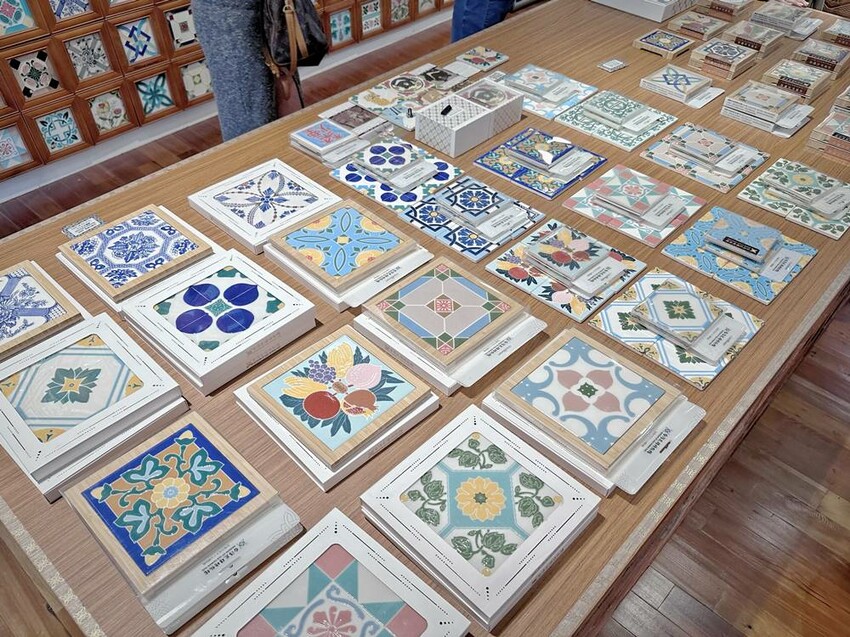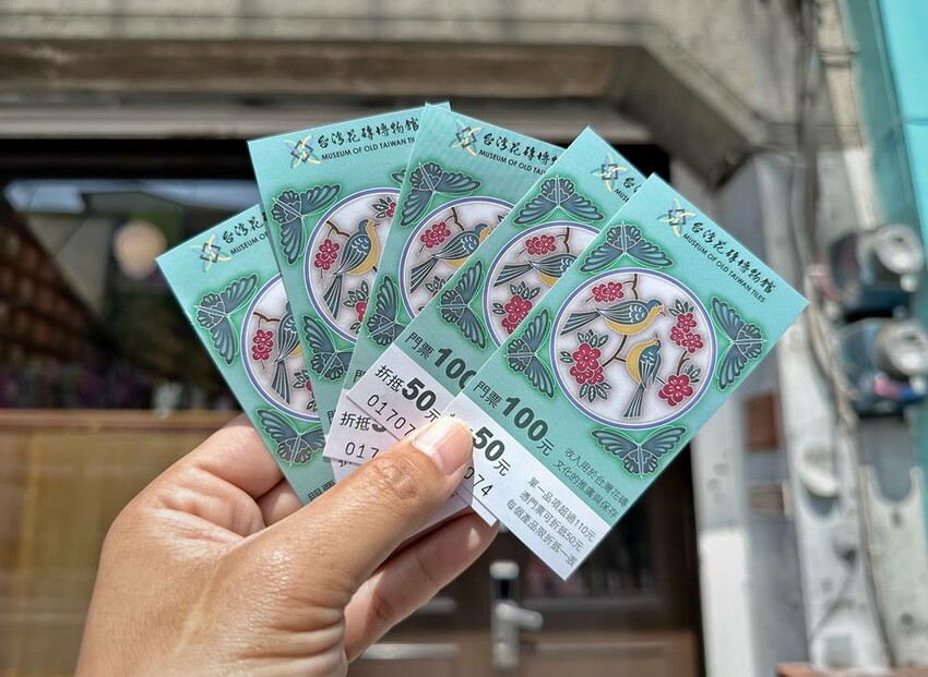 參訪台灣花磚博物館的朋友是需要購買門票才可入內,門票100元,其中50元可折抵館內消費,有不少花磚杯墊、飾品、指膠帶等文創商品,但部分商品則不適用,而未滿7歲的孩童則是可以免費入館餐觀。