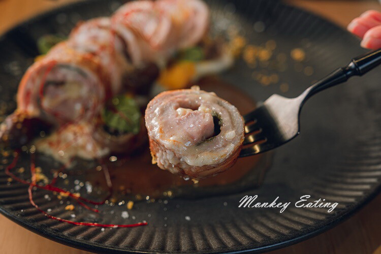 豬肉卷烤過後香氣十足,色澤也很誘人,加上漂亮的擺盤讓人賞心悅目