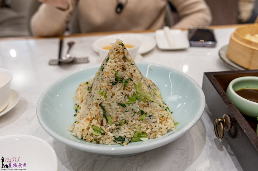 上海菜飯價格328元,上海菜飯的米粒分明,用成金字塔狀更是很好拍照的造型。