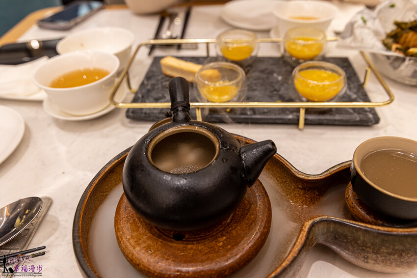 整個茶湯色澤相當不錯,喝起來有種淡淡的花香味,這裡的茶都會有服務人員桌邊服務幫你倒茶,不會讓客戶自己動手倒茶。