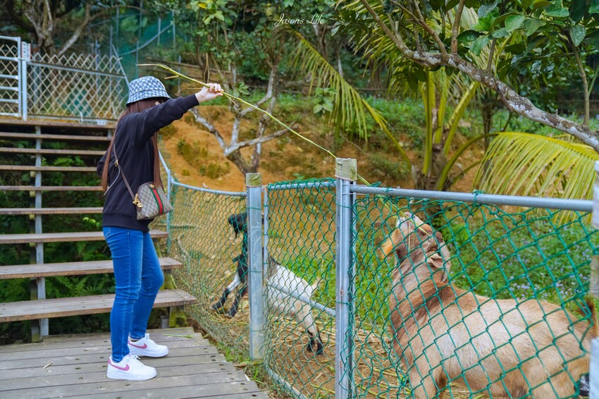 可以拿牧草和紅蘿蔔餵食,有角的跳跳羊超凶狠,會搶食小隻的食物
