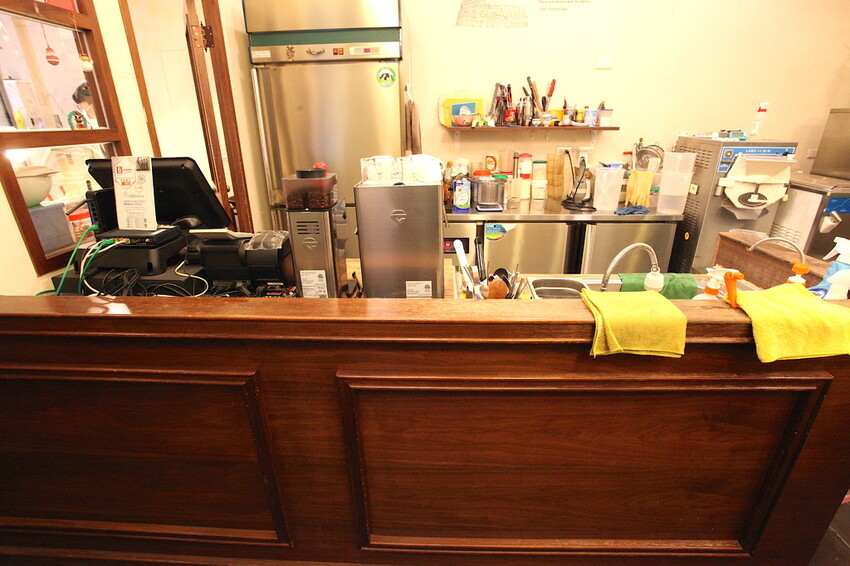 這店面有設置室內用餐區域供顧客內用,店裡面空間不大採歐風裝潢氛圍。