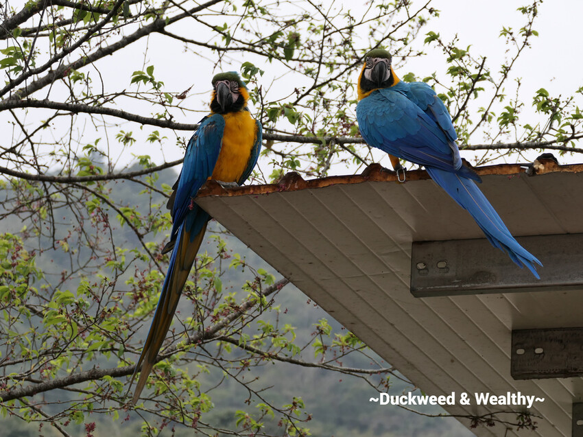 還有精彩的金剛鸚鵡放飛秀,不定時在賞櫻同時於天空中飛過