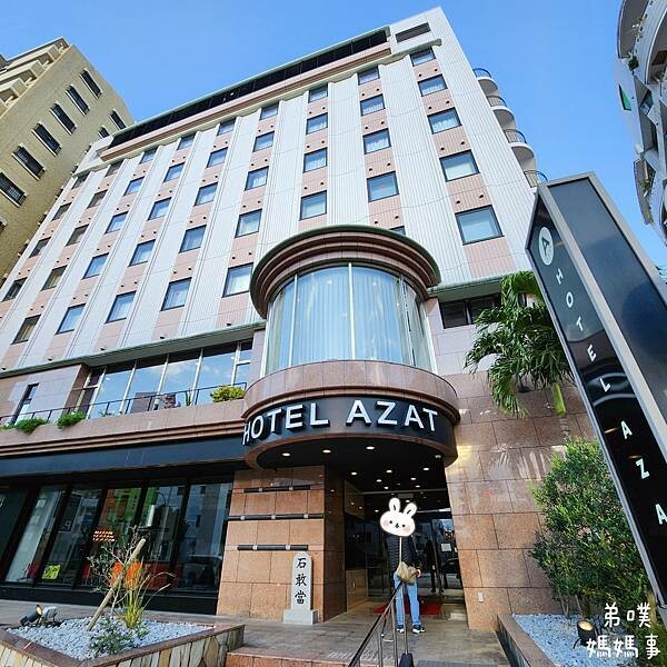 這次跟團住的HOTEL AZAT 那覇飯店(那霸阿扎特飯店)離安里車站走路不用一分鐘,對面就是24小時榮町琉貿(栄町りうぼう)超市,要去國際通大概走10分鐘,有停車場、早餐,不管自由行是不是自駕住這邊都很方便!!