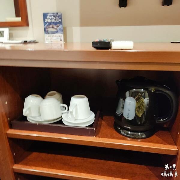 房間有熱水瓶和杯子,不過飲水的部分我們是直接去到飯店買礦泉水