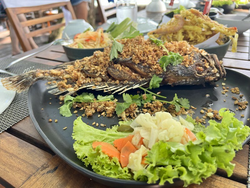 擺盤也算是好拍,我們點了青木瓜沙拉、炸海鮮、炸魚、